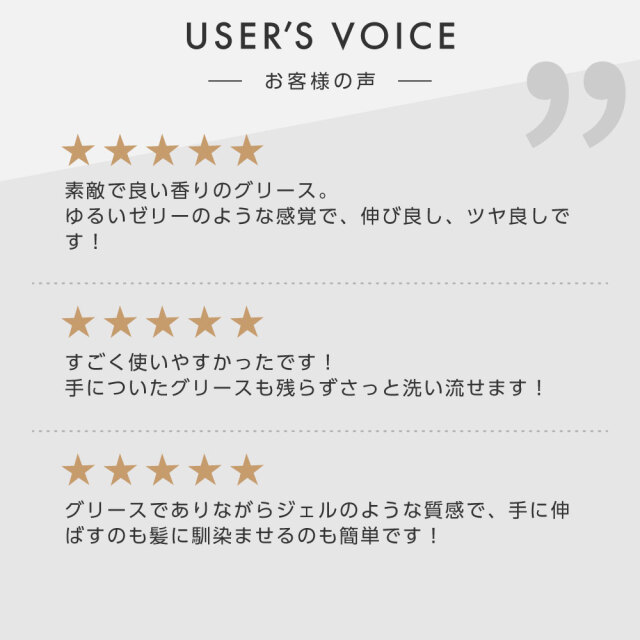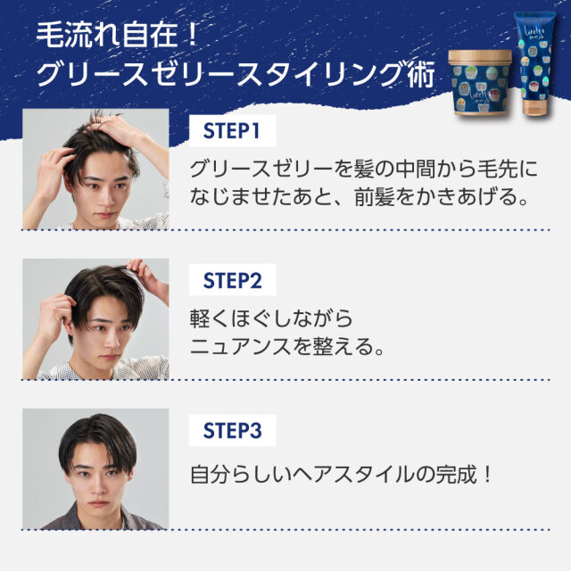 毛流れ自由自在! ぷるんとしたテクスチャーの扱いやすいグリース。